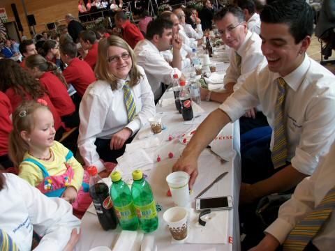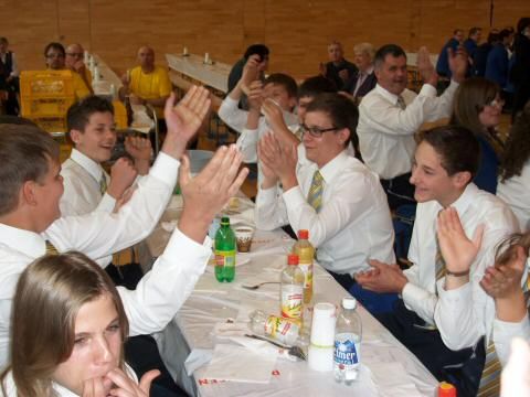 Rundum zufriedene Gesichter! Mit einem 2., einem 3. und einem 5. Rang haben sich die intensiven Vorbereitungen auf den Kreismusiktag 2013 gelohnt. Begonnen hat das "Abenteuer Mörschwil fägt" am Freitagabend mit dem Seifenkistenrennen an welchem Mathias, Marco, Andreas, Philippe, Severin und Manuel den 2. Rang erreichten. Am Samstagvormittag traten wir zum Bewertungsspiel mit dem Stück „Lord Tullamore“ an und erreichten 80 Punkte, was Rang 3 bedeutete. Am frühen Abend, bei der Parademusik, erreichten wir 84.33 von möglichen 100 Punkten und wurde hervorragende 5. von 13 startenden Vereinen.
