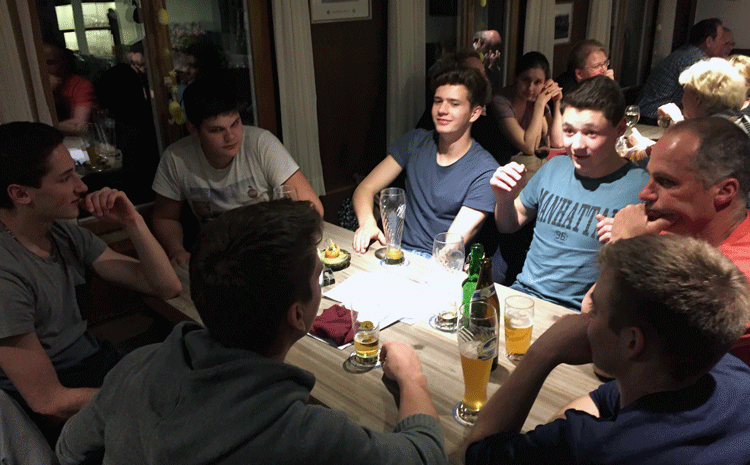 Am Dienstagabend trafen sich zuerst die Kids und anschliessend die "Grossen" im Dä Seeblick um einmal eine andere Probe zu machen. Herzlichen Dank an Matthias für "Speis" und an Rahel und Däni für "Trank". So lässt es sich locker proben...