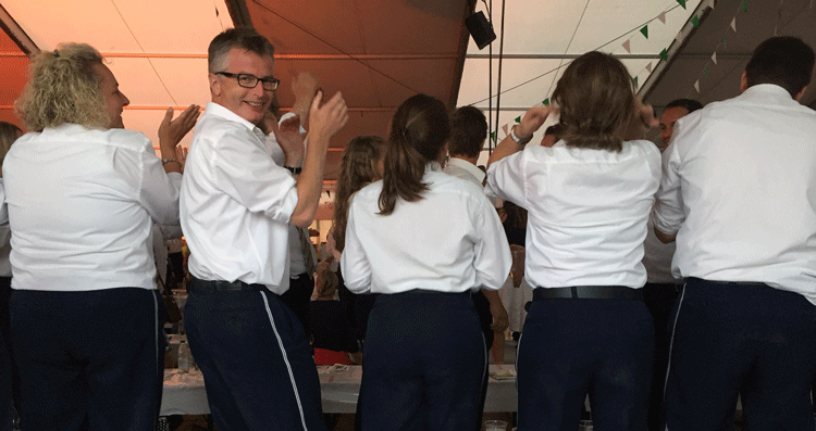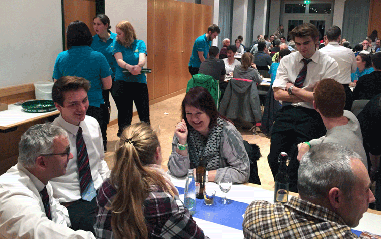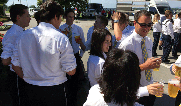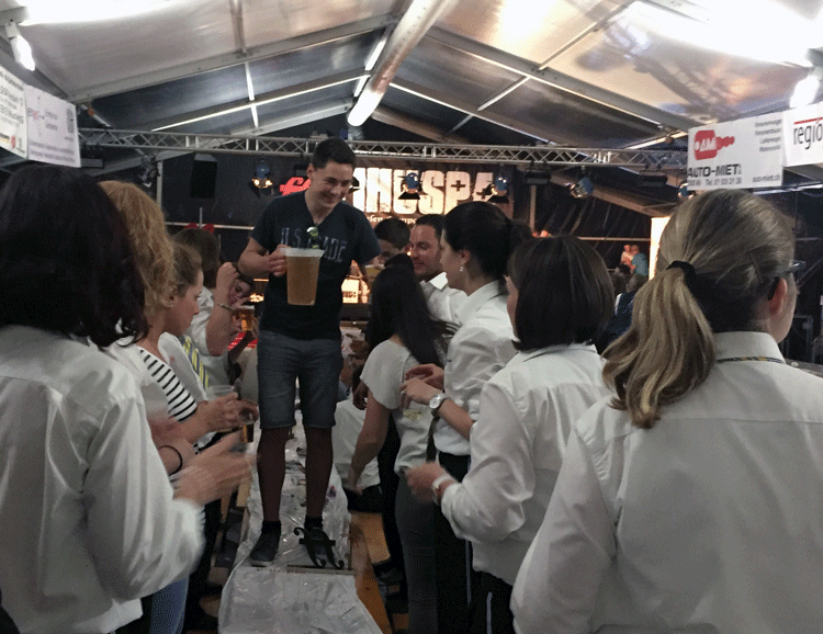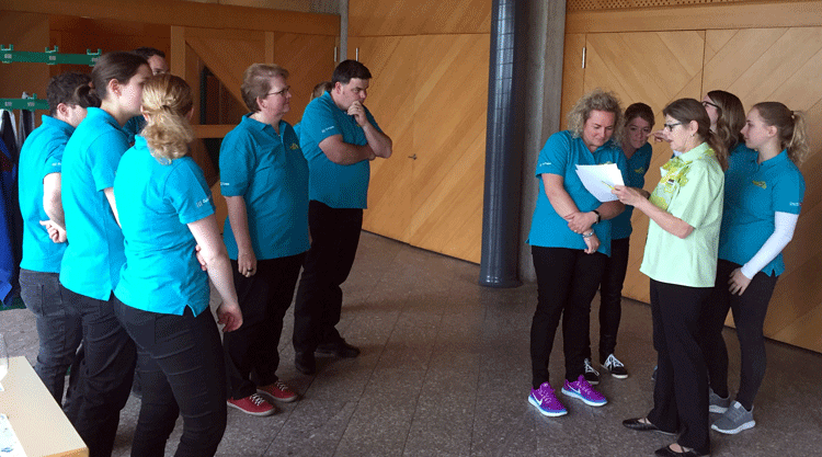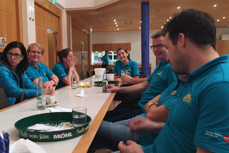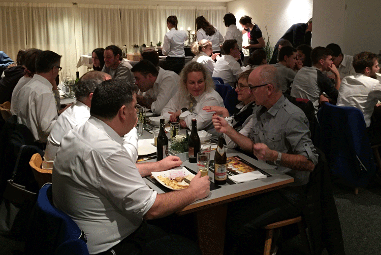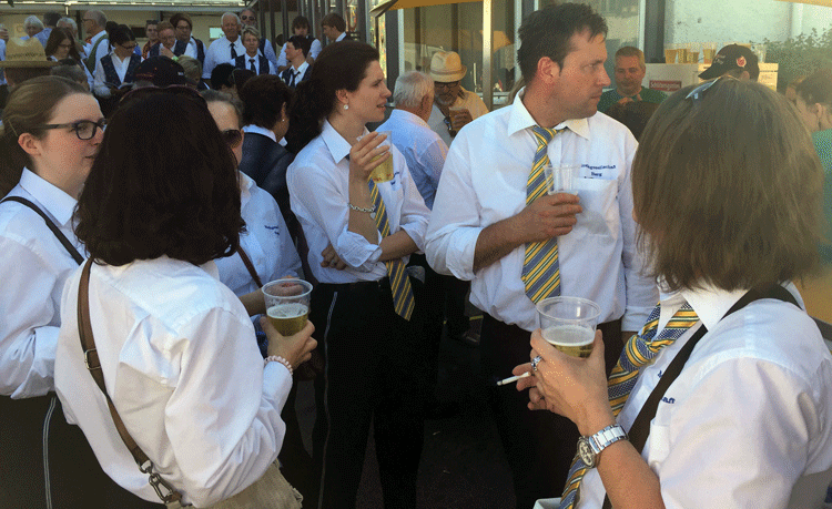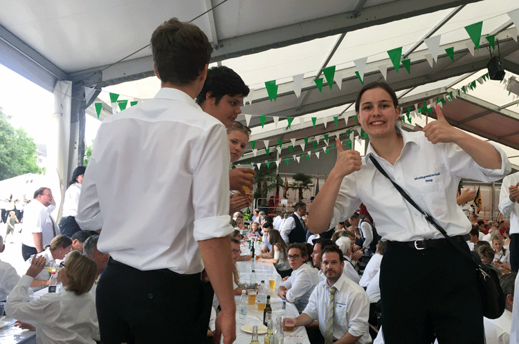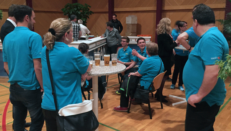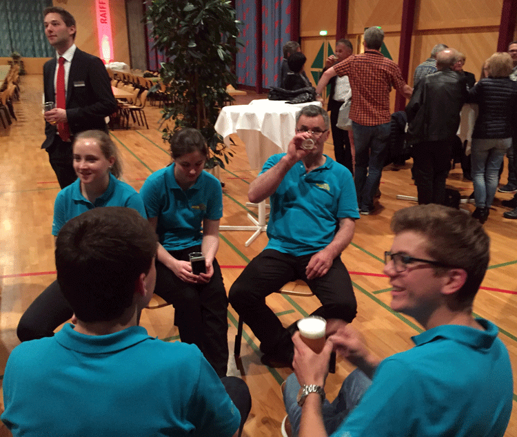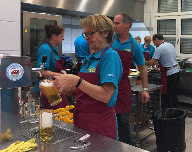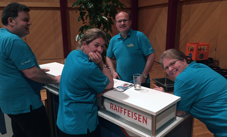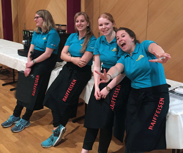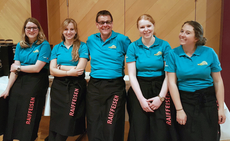 38 fleissige Hände der MG Berg packten an der Generalversammlung der Raiffeisenbank Regio Arbon, zusammen mit Helferinnen und Helfern der MG Steinach, richtig zu, um den rund 500 Gästen einen gemütlichen Abend zu bieten.