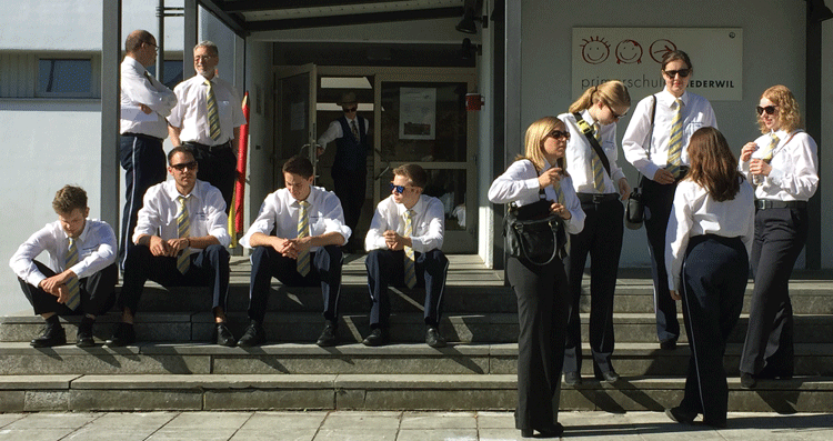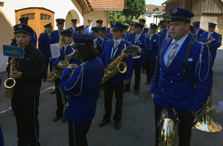 Nach einer, für den einen oder anderen, kurzen Nacht trafen wir uns schon wieder und liessen uns aber nichts anmerken obwohl es für die einen schon sehr hart war... Wir begleiteten die Erstkommunikanten zu ihrem Dankgottesdienst in den Holzerhof und umrahmten das Fest musikalisch.