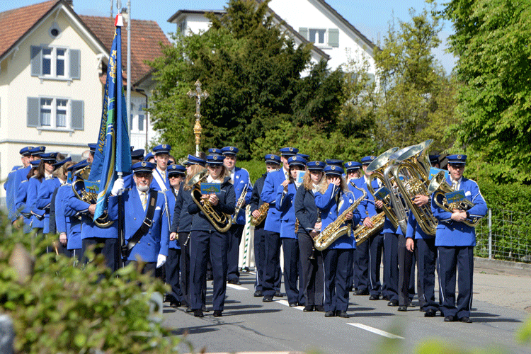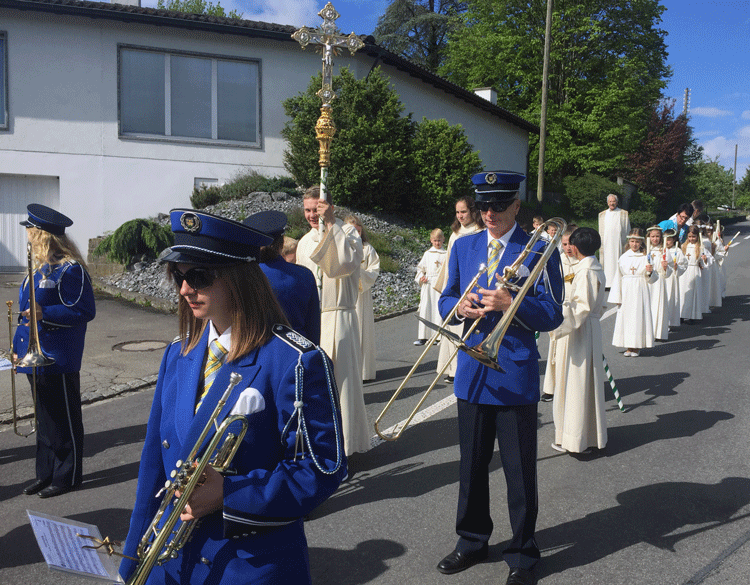 Bei angenehmen Temperaturen und freundlichem Wetter wurden der Einzug wie auch das Ständli nach der Kirche wie geplant durchgeführt damit die vielen Erstkommunikanten ein schönes Fest feiern konnten.