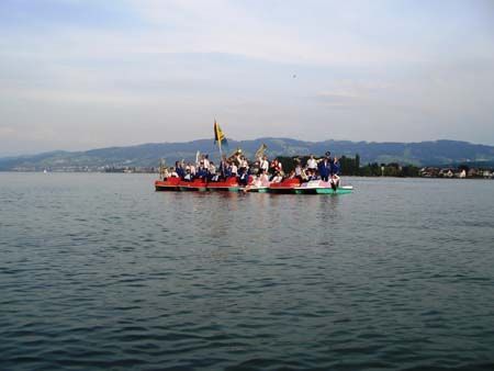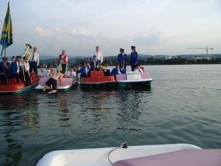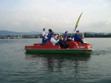 Traditionell trafen sich auch dieses Jahr ca. 55 junge und weniger junge Mitglieder der Musikvereine Berg SG, Thal, Rheineck, Andwil-Arnegg und Waldkirch. Bereits zum fünften Mal gings nach Hittisau im benachbarten Vorarlberg